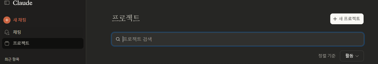 - '+ 새 프로젝트' 버튼이나 'New Chat' 옵션을 클릭합니다.