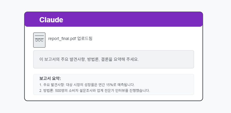 - 예시: "이 보고서의 주요 발견사항, 방법론, 결론을 3-5개의 핵심 포인트로 요약해 주세요."