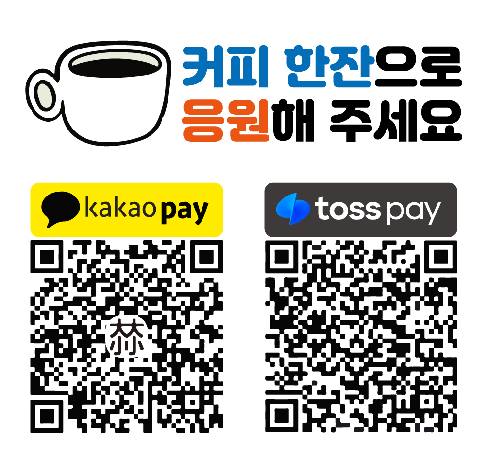 | 후원 QR 코드 커피한잔으로 응원하기!! (0) | 2025.05.07 |