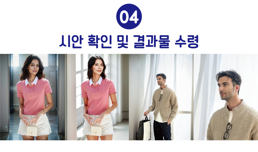 고객이 제공한 레퍼런스 이미지와 스타일 가이드를 기반으로, 브랜드에 최적화된 고퀄리티 룩북 이미지 생성이 가능합니다.